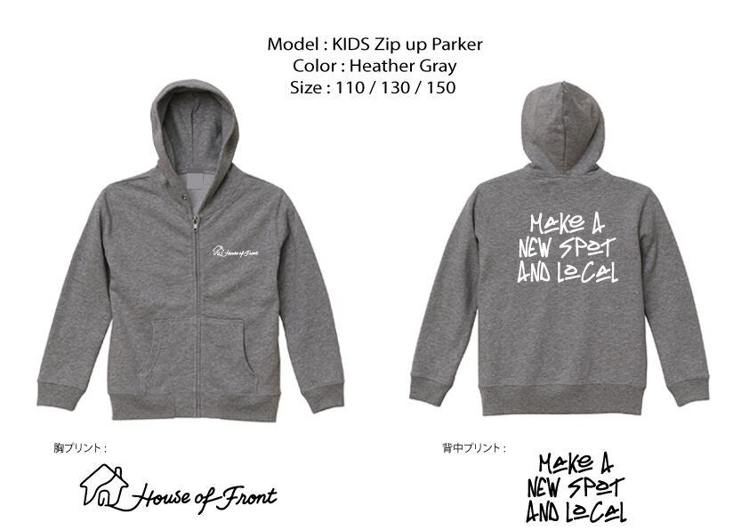 KIDS ZIP UP Hoodie gray (受注生産)